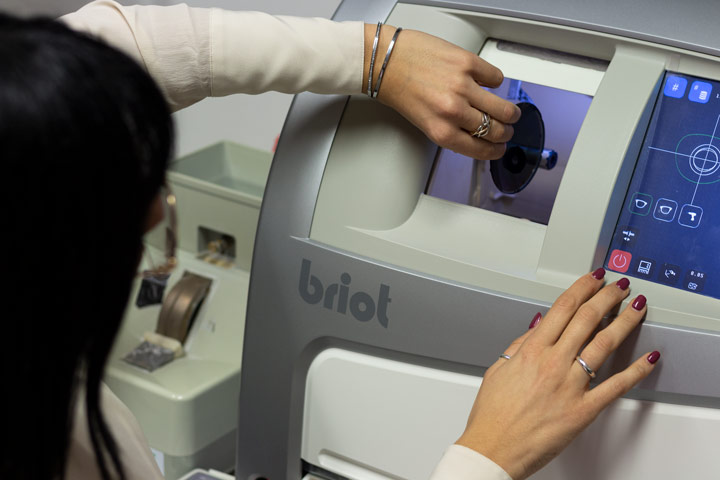 Disponiamo di un laboratorio con mola automatizzata, collegata ad un centratore digitalizzato, per la sagomatura di lenti organiche e minerali.
